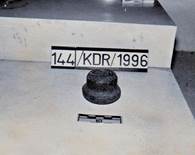 Penampang silindris, pendek. Bagian ujung menonjol lebih besar dari pada bagian pangkal, seperti jamur merang. Ada sedikit luka pada bagian pangkal.