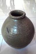 Guci ini utuh dengan warna hijau kecoklatan. Mulut guci kecil dengan bahu turun dan mengembang ditengah. Glasir aus, pada badan dihiasi jajaran garis garis – garis vertikal secara rapat melingkari bagian atas guci. Pada bagian terlebar terdapat garis horisontal bersusun enam melingkari badan guci. Banyak terdapat karat yang menempel pada tubuh guci.